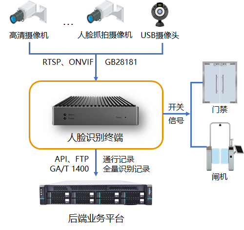 采用人臉識(shí)別和訪客機(jī)的方式,通過(guò)門口攝像機(jī)采集的人臉信息,跟系統(tǒng)中的人臉庫(kù)做比對(duì),判斷來(lái)訪者是否有進(jìn)出權(quán)限,并結(jié)合傳統(tǒng)的門禁識(shí)別方式,控制門鎖的開關(guān),從而方便人員通行,提高服務(wù)質(zhì)量。業(yè)務(wù)需要的情況下,可以在人臉識(shí)別的同時(shí),記錄考勤信息,生成考勤報(bào)表。