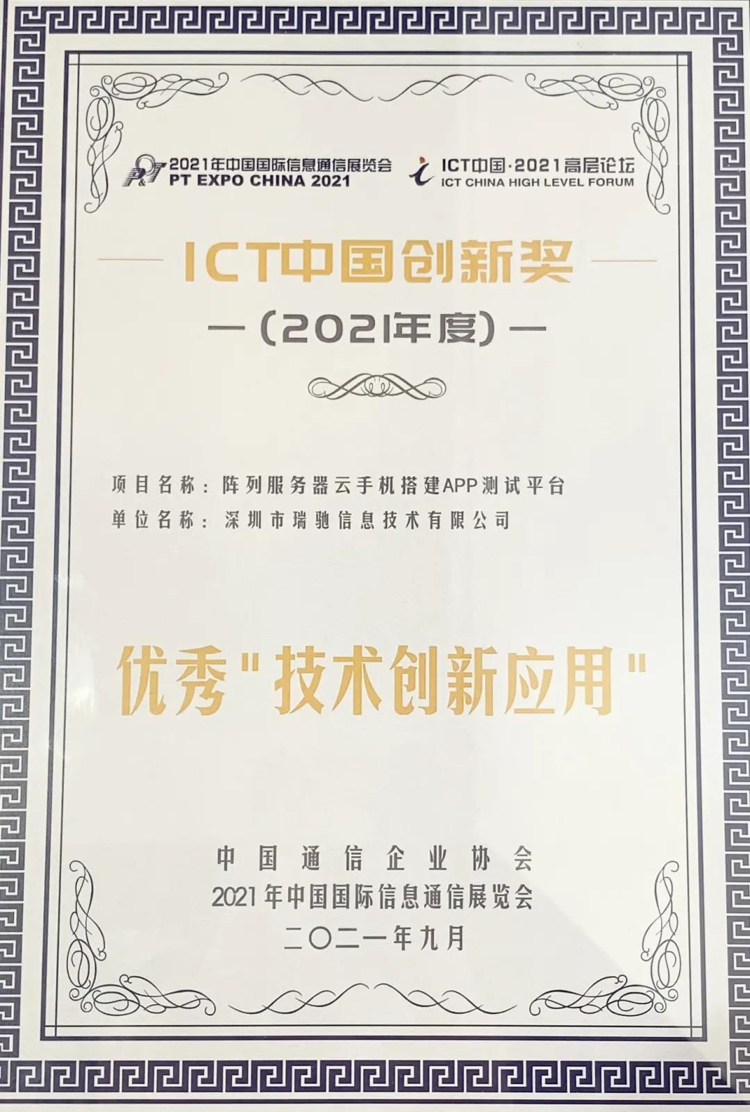 同時,陣列式服務(wù)器云手機搭建APP測試平臺項目,榮獲2021年度ICT中國創(chuàng)新獎,被評為優(yōu)秀“技術(shù)創(chuàng)新應(yīng)用”,得到業(yè)界的高度認可。