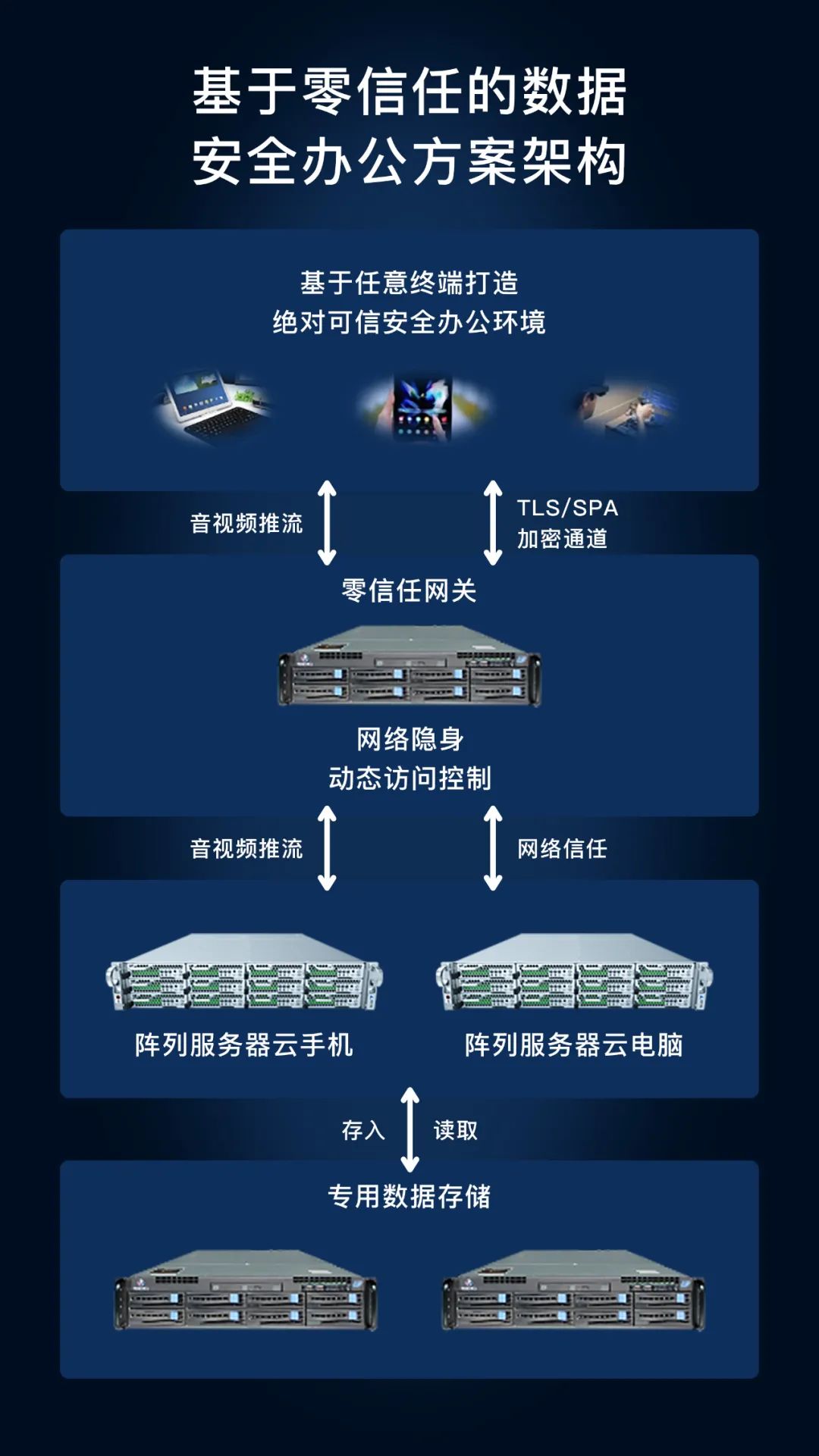 瑞馳與合作伙伴面向黨政央企、公檢法司等聯合推出基于零信任的云手機安全辦公方案,讓任意終端絕對安全接入內外網辦公成為可能。
