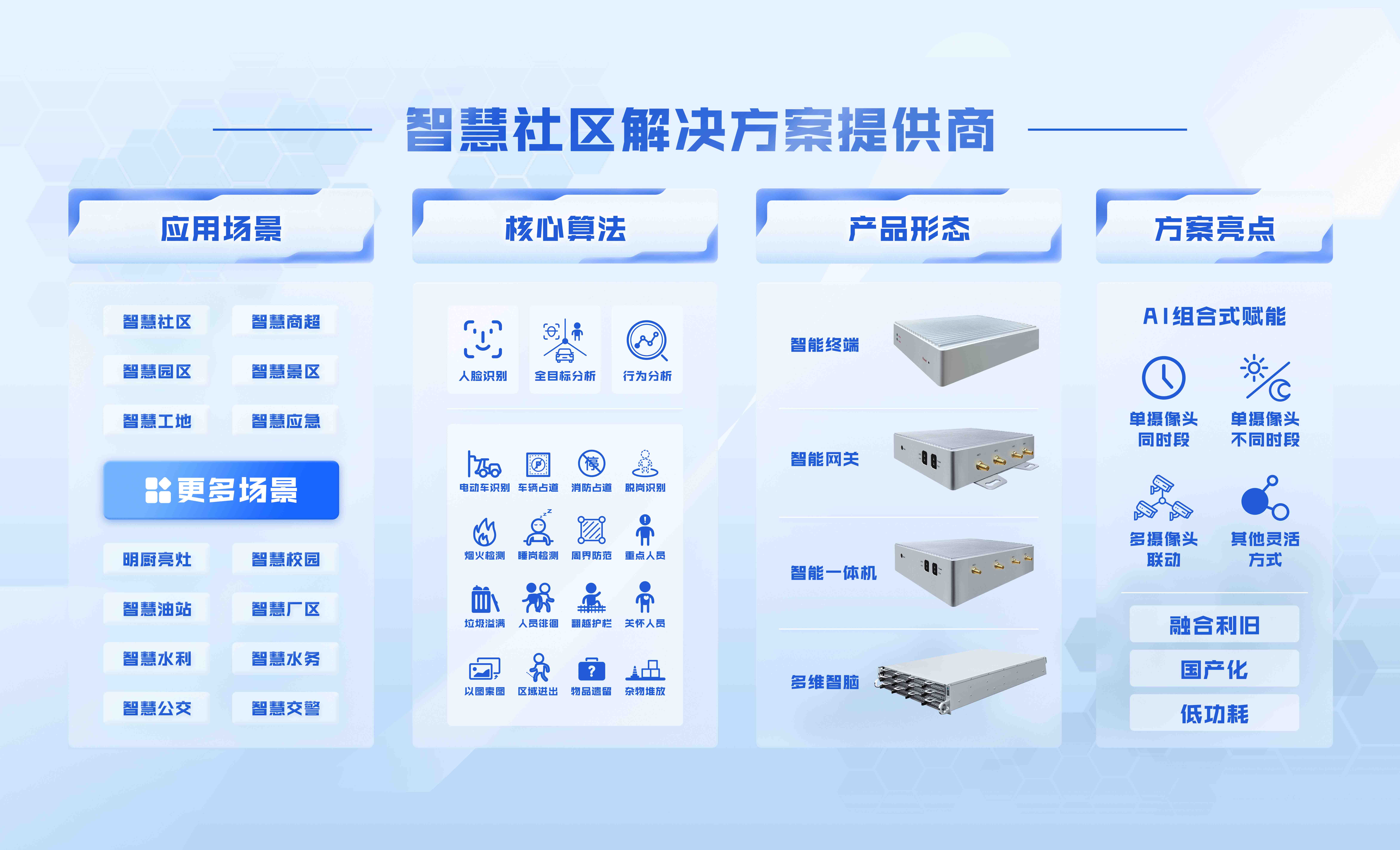 此次將動態(tài)演示多維智腦一體機,將集智能視頻分析、視頻監(jiān)控存儲、業(yè)務(wù)系統(tǒng)應(yīng)用于一體的多維度應(yīng)用產(chǎn)品進(jìn)行演示,該產(chǎn)品能為不同行業(yè)用戶提供一體化的智能分析產(chǎn)品解決方案,滿足不同人群的使用場景需求。